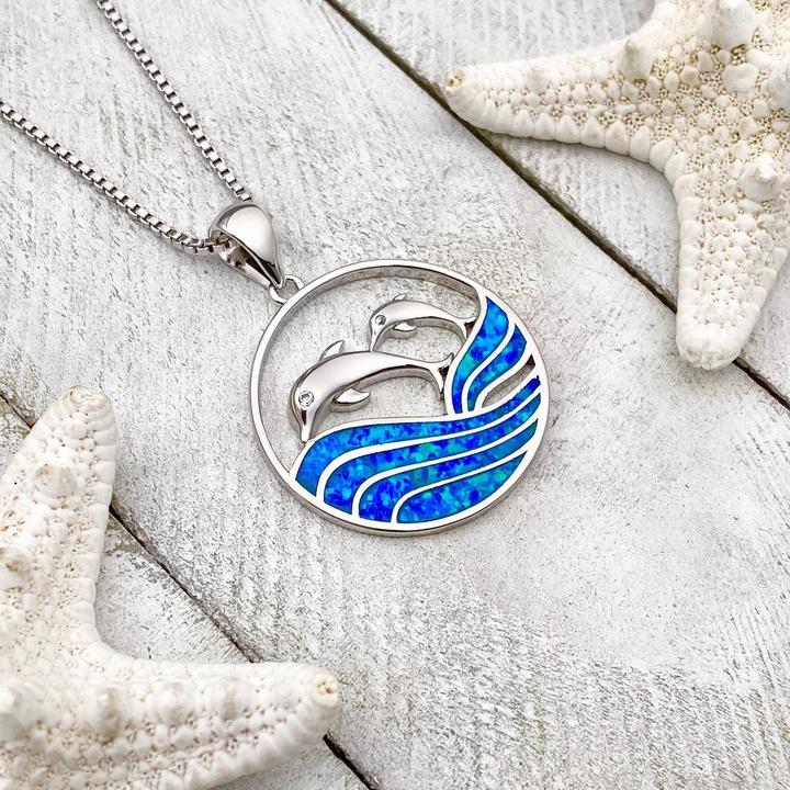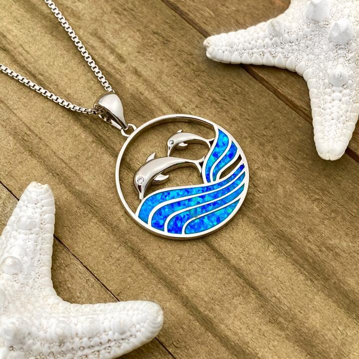 Collar Delfines en Ópalo y Plata