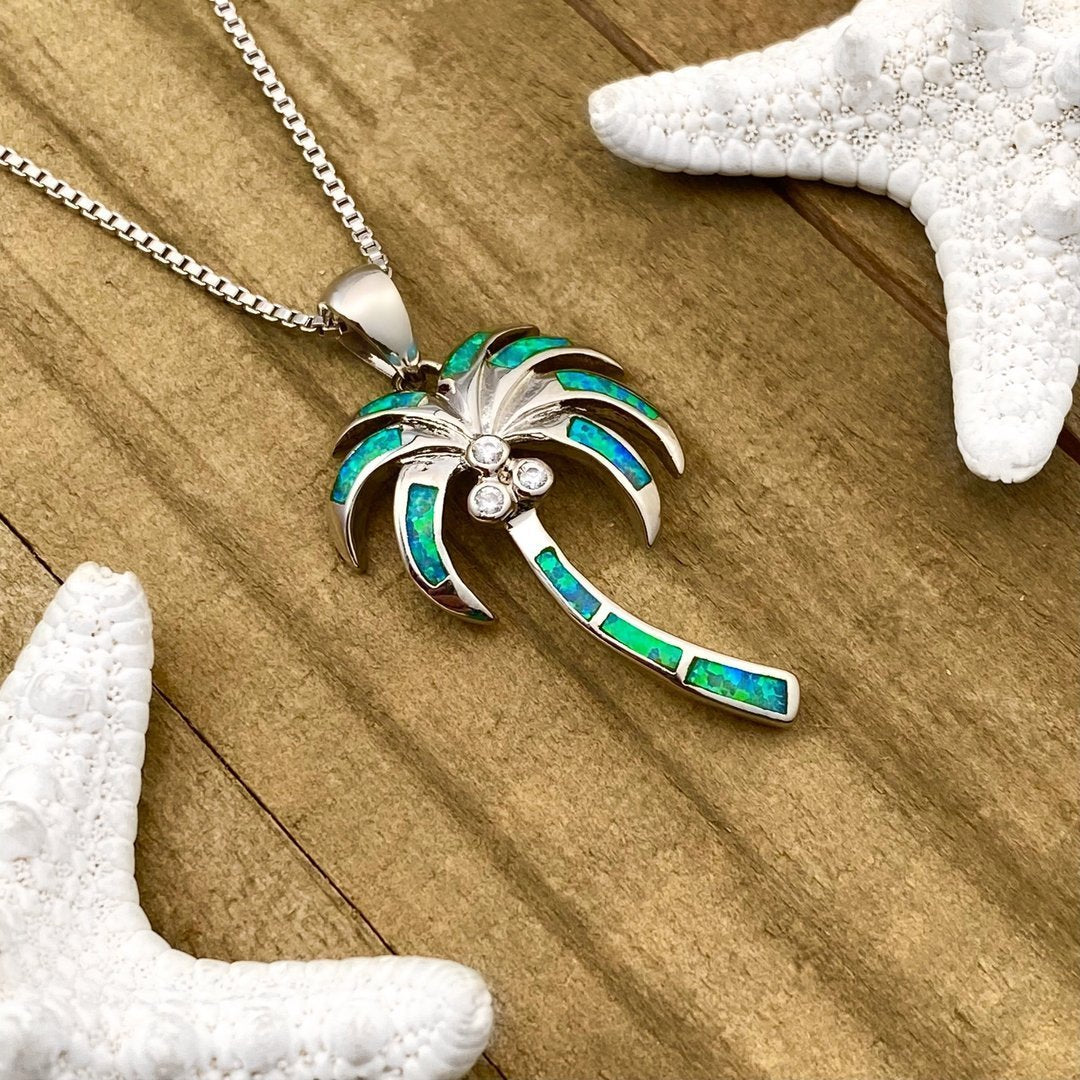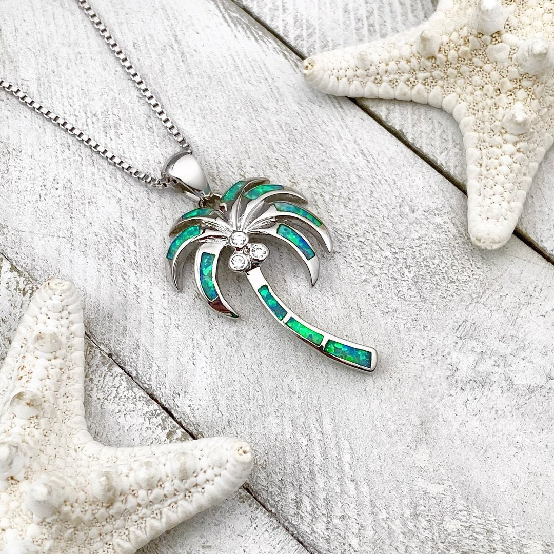 Collar Coconut Tree en Ópalo y Plata